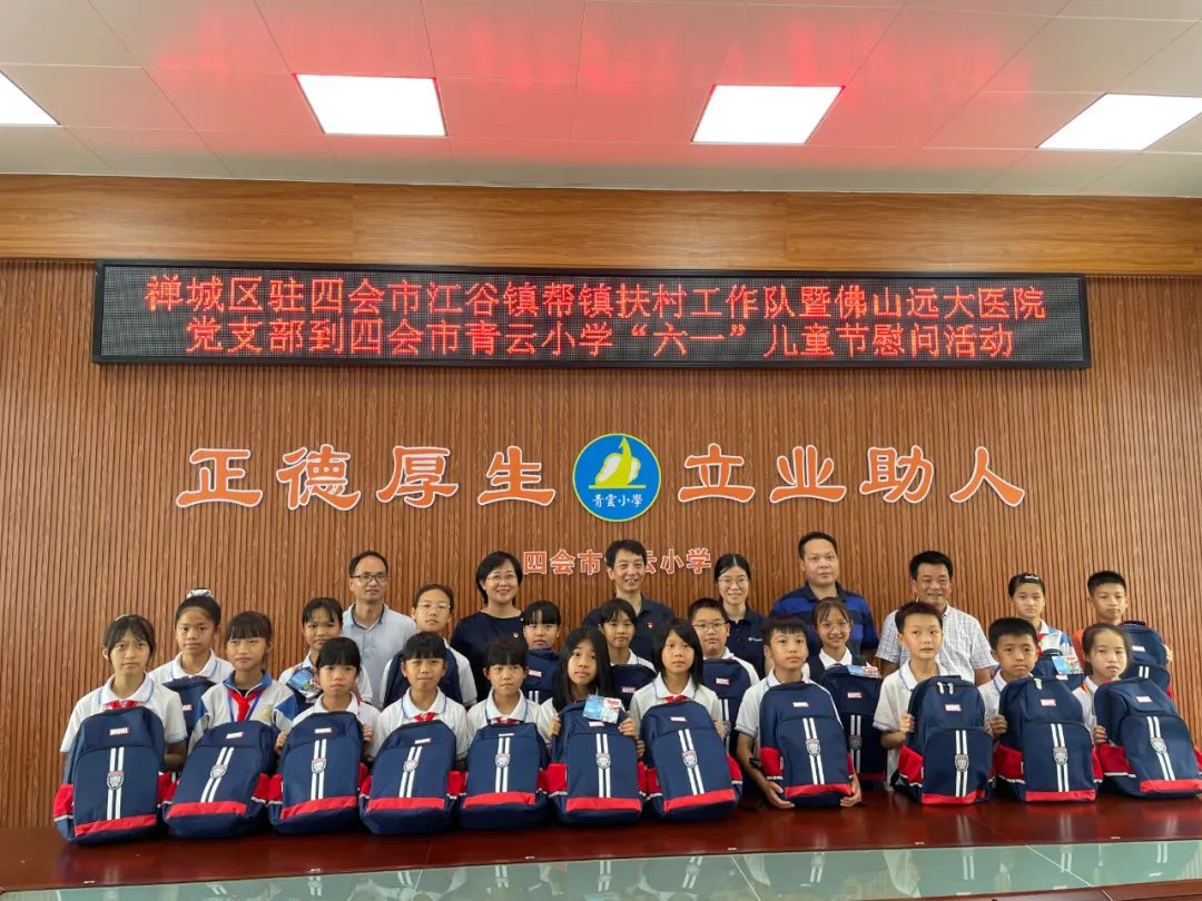 党建引领 企业有爱发表时间:2022-06-01 08:02网址:https://www.fsyd120.com/ 5月31日下午,应禅城区驻四会市江谷镇帮镇扶村工作队号召,佛山远大医院党支部到四会市江谷镇青云小学进行"六一"儿童节慰问活动。